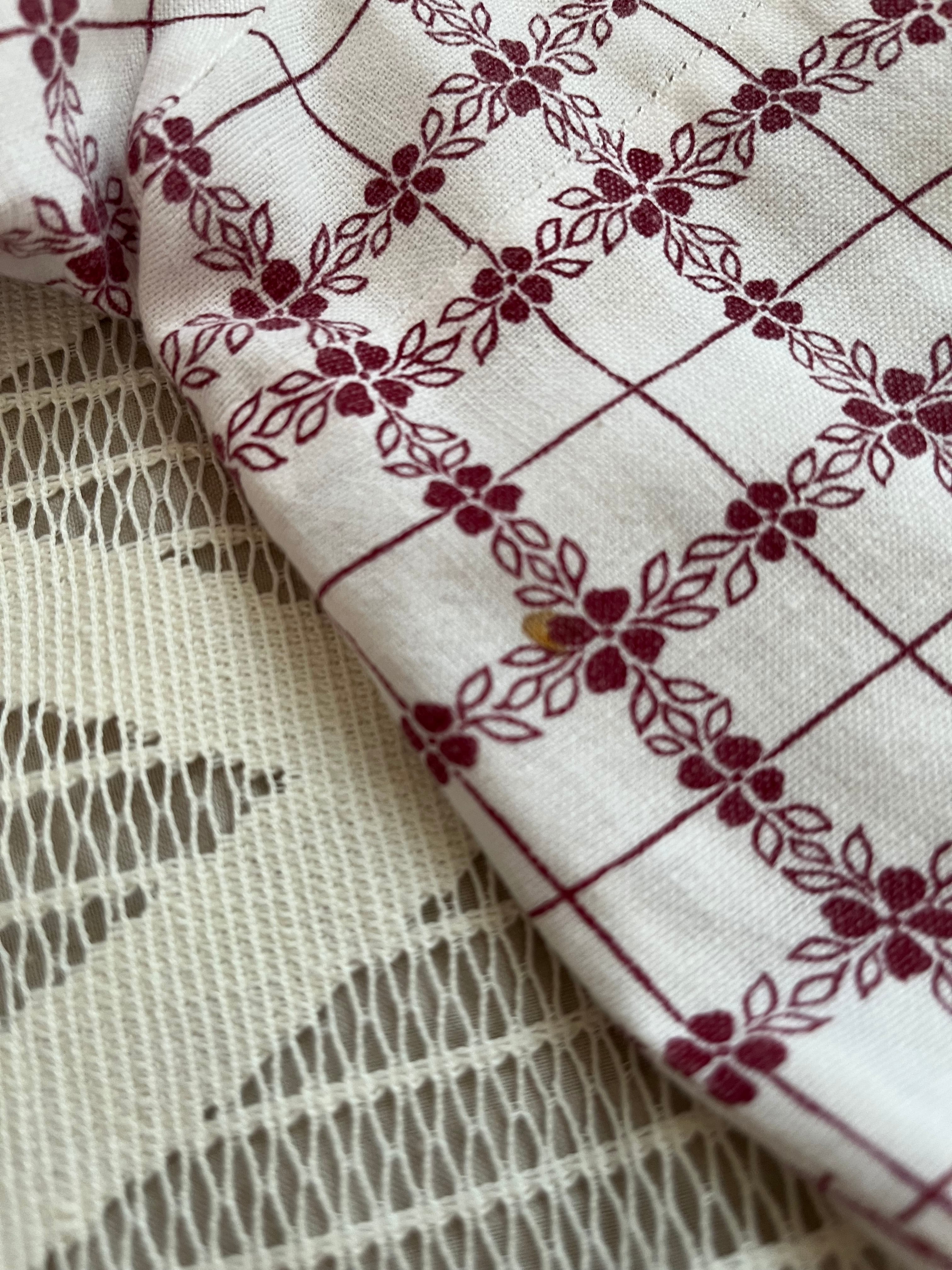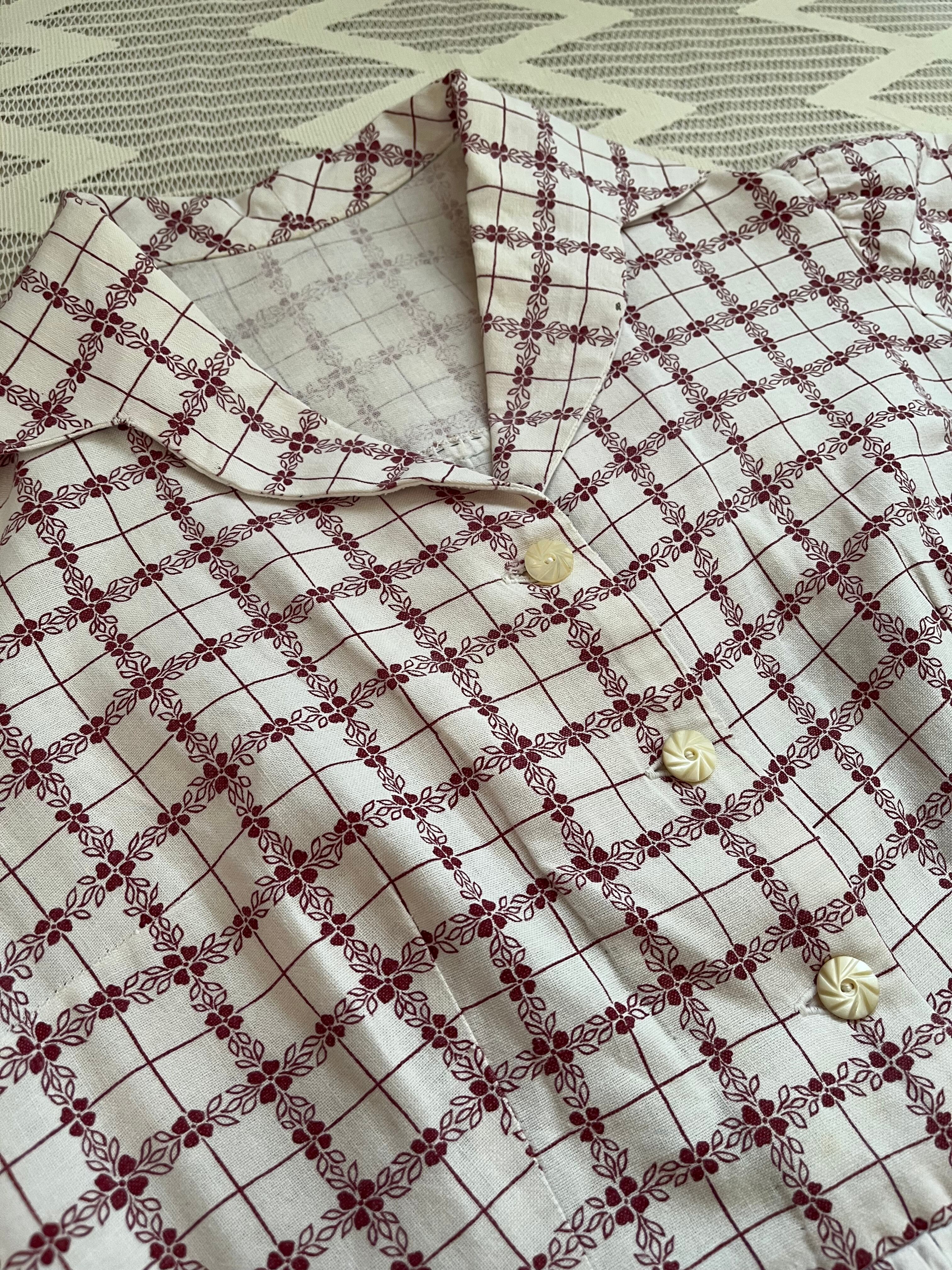 レトロな白いボタンと花柄チェックがかわいいおすすめ商品です